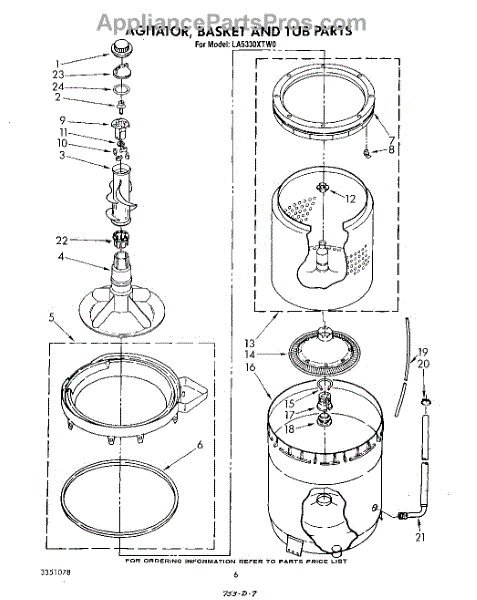 Parts for Whirlpool LA5330XTW0: 04 - Agitator, Basket And Tub Parts