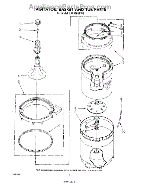 Parts for Whirlpool LA6000XPW2: 04 - Agitator, Basket And Tub Parts