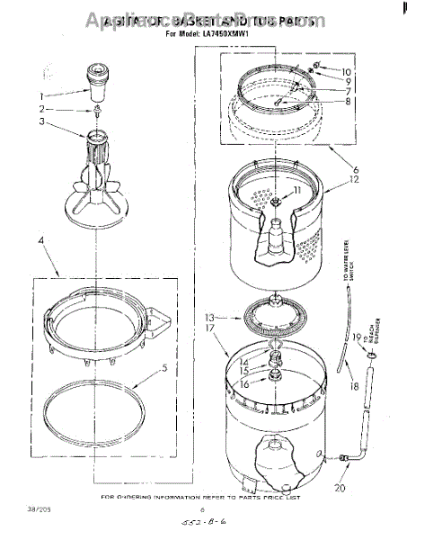 Parts for Whirlpool LA7450XMW1: 04 - Agitator Basket And Tub Parts