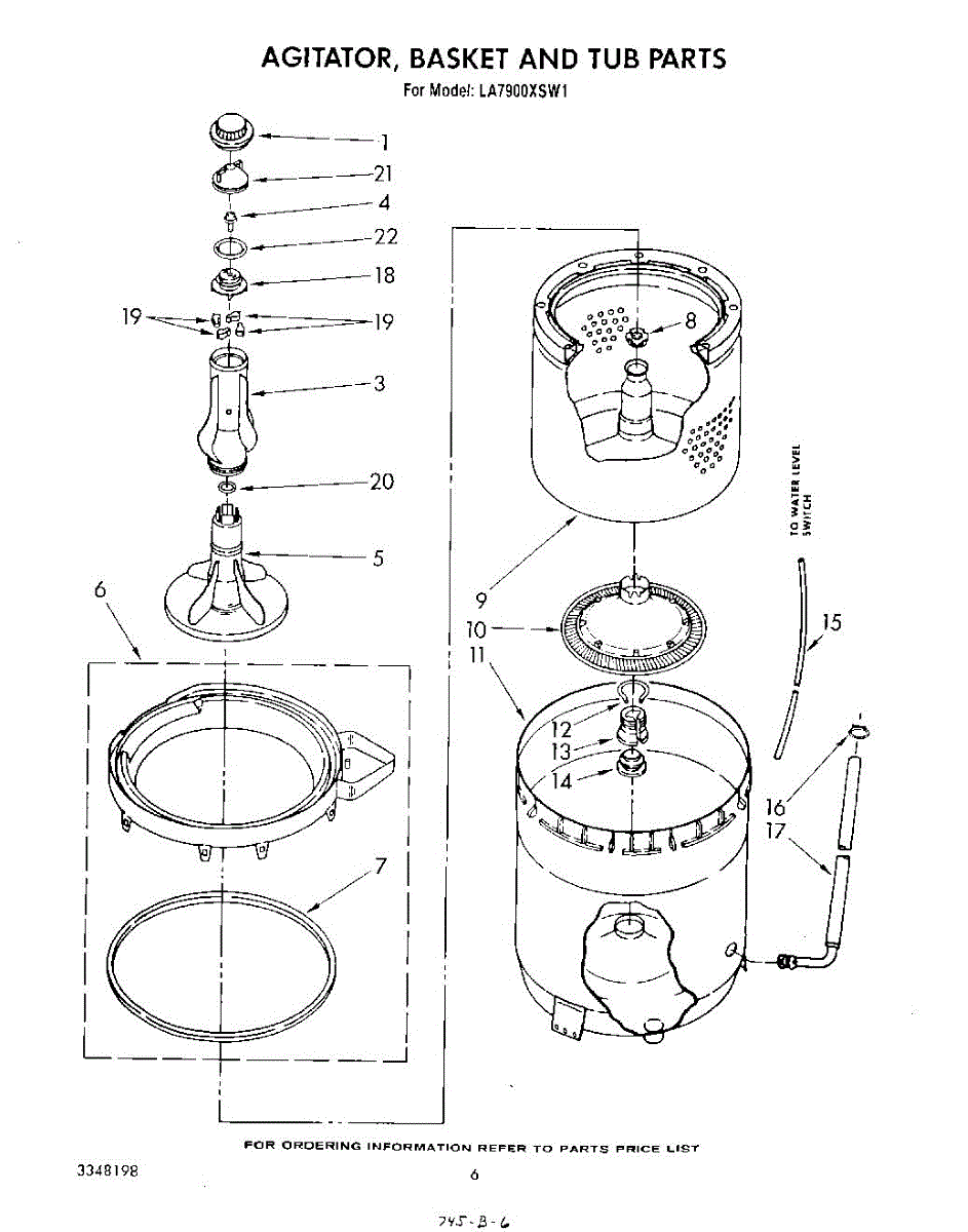 Inner tub basket holds clothing during wash cycles. Replace if cracked, rusty, or broken. Installs in center of washer between outer tub and agitator.