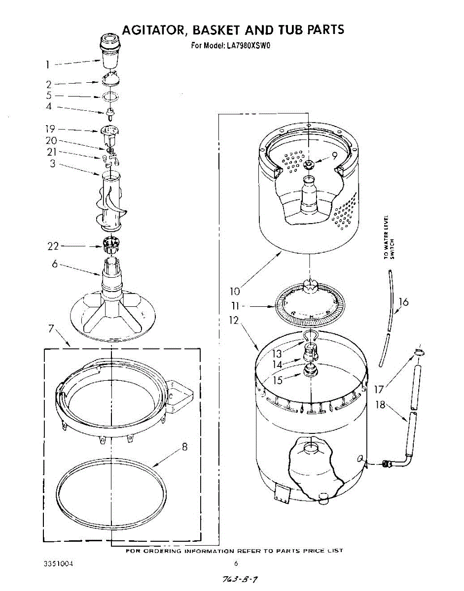 Inner tub basket holds clothing during wash cycles. Replace if cracked, rusty, or broken. Installs in center of washer between outer tub and agitator.