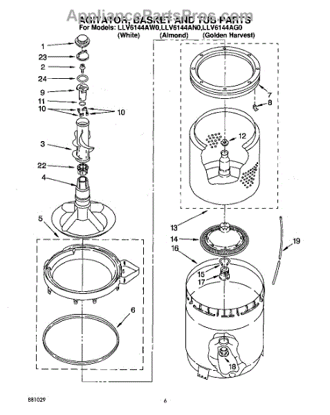 Parts for Whirlpool LLV6144AG0: 04 - Agitator, Basket And Tub Parts