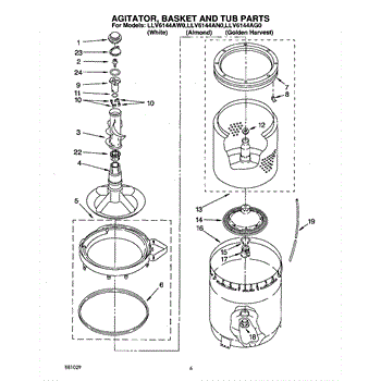 Parts for Whirlpool LLV6144AN0: 04 - Agitator, Basket And Tub Parts