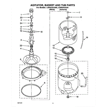 Parts for Whirlpool LSP8245AW0: 04 - Agitator, Basket And Tub Parts