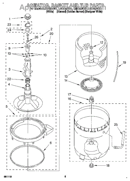 Parts for Whirlpool LSR7233BG1: 04 - Agitator, Basket And Tub Parts