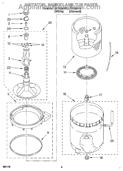 Parts for Whirlpool LST7233AW1: 04 - Agitator, Basket And Tub Parts