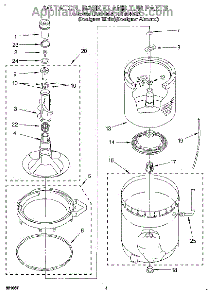 Parts for Whirlpool LST8244BQ0: 04 - Agitator, Basket And Tub Parts