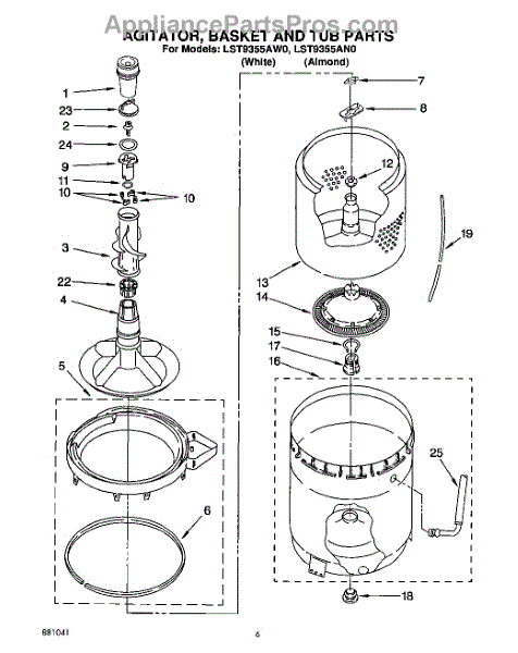 Parts for Whirlpool LST9355AN0: 04 - Agitator, Basket And Tub Parts