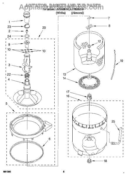 Parts for Whirlpool LST9355BN0: 04 - Agitator, Basket And Tub Parts