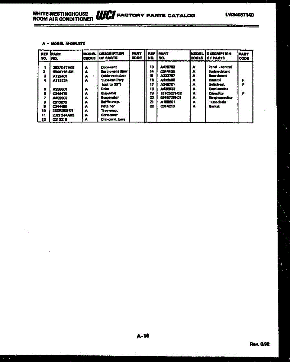 Parts for Frigidaire AL099K1A1: 04 - Air Handling Parts