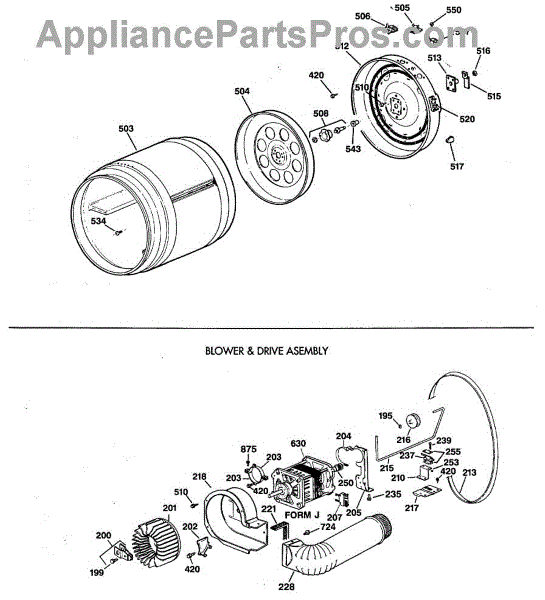 Parts for Ge DDC5400SDLAD: 04 - Blower & Drive Assembly Parts