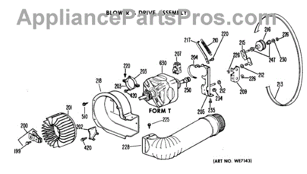 The Blower Wheel is an OEM replacement part for GE dryers. It has a role in the air circulation within the dryer, aiding in the even and efficient drying of clothes. The blower wheel, connected to the motor, helps in expelling the moist air out of the dryer through the exhaust vent during the drying cycle. Causes of a malfunctioning blower wheel are typically wear and tear from regular use, the accumulation of lint or debris, or damage to the wheel’s fins or central hub, which can impact its rotation and air circulation capability. Symptoms of a bad Blower Wheel include: