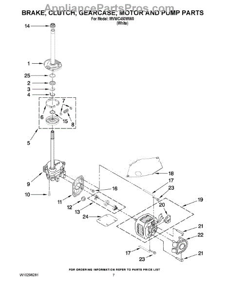 Parts for Maytag MVWC450WW0: 04 - Brake, Clutch, Gearcase, Motor And Pump Parts