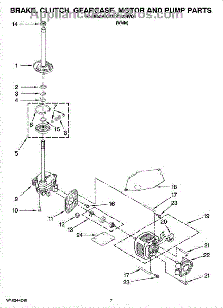 Parts for Whirlpool CAWS14234VQ0: 04 - Brake, Clutch, Gearcase, Motor And Pump Parts