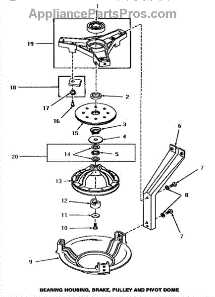 Parts for Amana HA2620: 04 - Brg Hsg / Brake / Pulley & Pivot Dome Parts