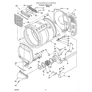 This front drum bulkhead is the stationary front panel that supports the dryer drum and seals the drum opening to maintain proper airflow and drum alignment for reliable drying performance. What it does: