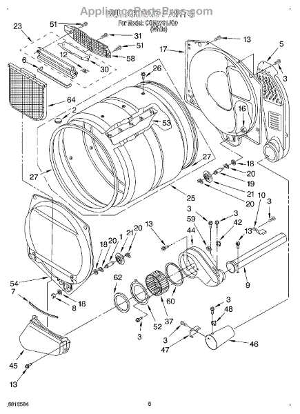 Replacement dryer drum that holds and tumbles laundry so air circulates evenly for efficient drying. Restores a smooth rotating drum surface to prevent fabric damage and improve drying performance. What it does: