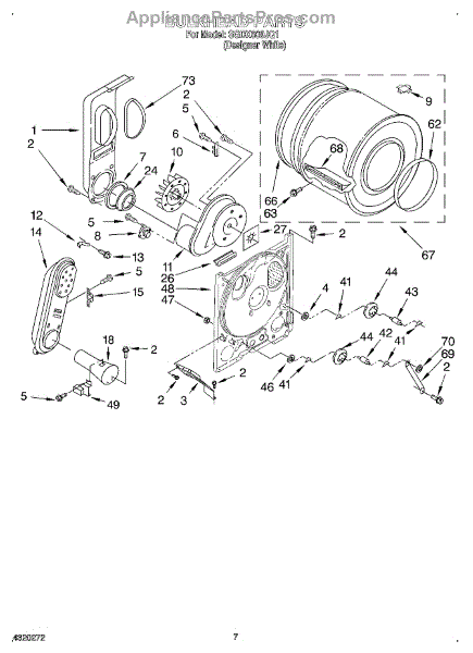 This is a drum assembly intended for use with dryers. This part can be found inside the dryer and is responsible for holding clothing while a cycle is running. It holds wet laundry while loading the appliance. Over time and with use, the drum assembly can start to wear out. This can cause the dryer to squeal, start and stop during a cycle, make buzzing noises, or seize up.If the drum assembly is damaged, it will need to be replaced. Make sure to have basic tools and a pair of work gloves ready. The dryer should be turned off and unplugged from the wall. Raise the top panel, remove the front panel, and then remove the drum. The drum support roller should be taken out and installed on the new drum. Reinstall with the new component and reassemble all parts before use.The drum assembly is made to be used with dryers and washer/dryer combos from Inglis, Estate, Admiral, Crosley, Roper, Magic Chef, Amana, KitchenAid, Maytag, Kenmore, and Whirlpool. It is a genuine OEM replacement part that is sourced directly from the manufacturer. The part is sold on an individual basis.