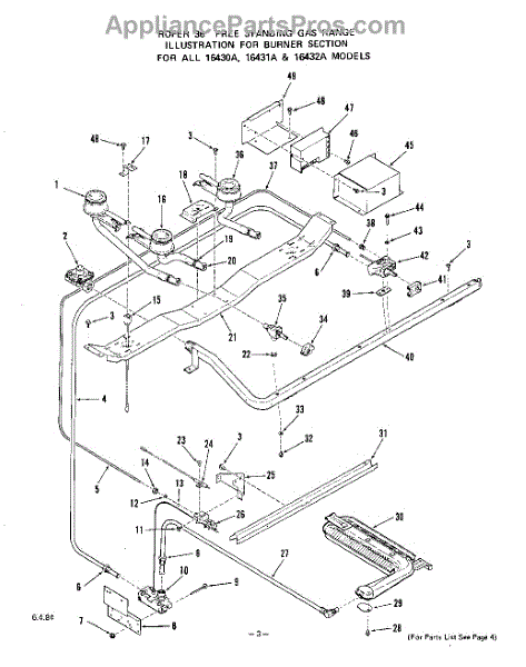 Parts for Whirlpool 1643W0A: 04 - Burner Parts
