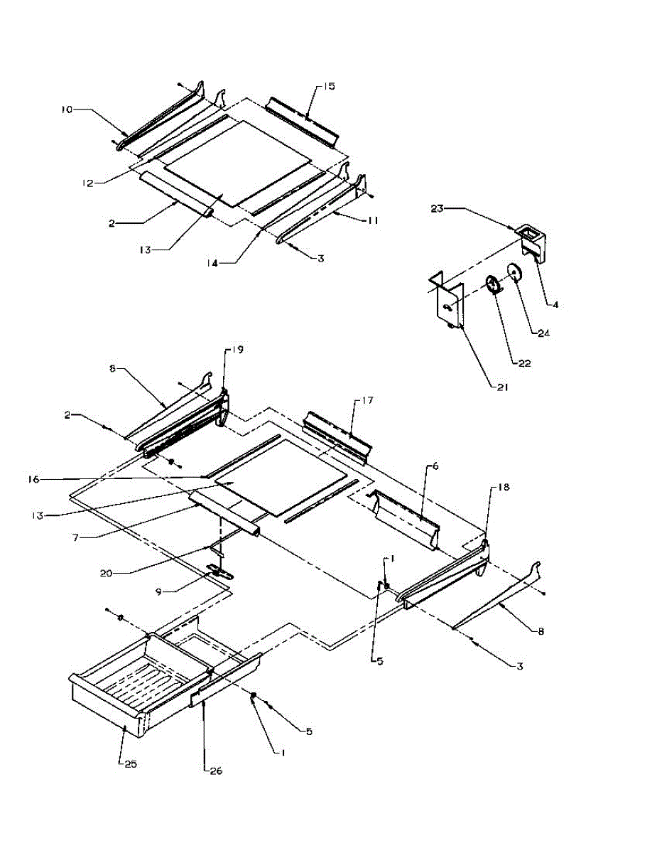Small mounting screw for refrigerator crisper drawer frame assembly. Replaces missing or stripped screws that secure frame pieces together.