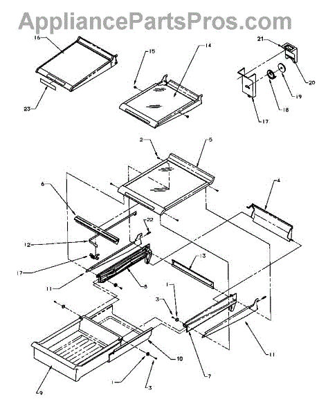 Small mounting screw for refrigerator crisper drawer frame assembly. Replaces missing or stripped screws that secure frame pieces together.