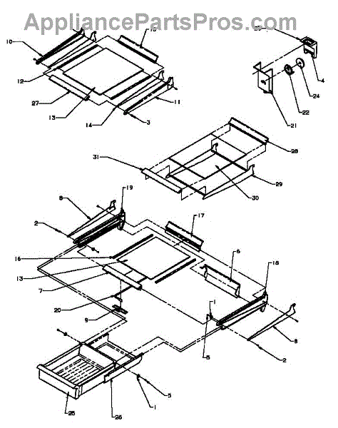 Small mounting screw for refrigerator crisper drawer frame assembly. Replaces missing or stripped screws that secure frame pieces together.