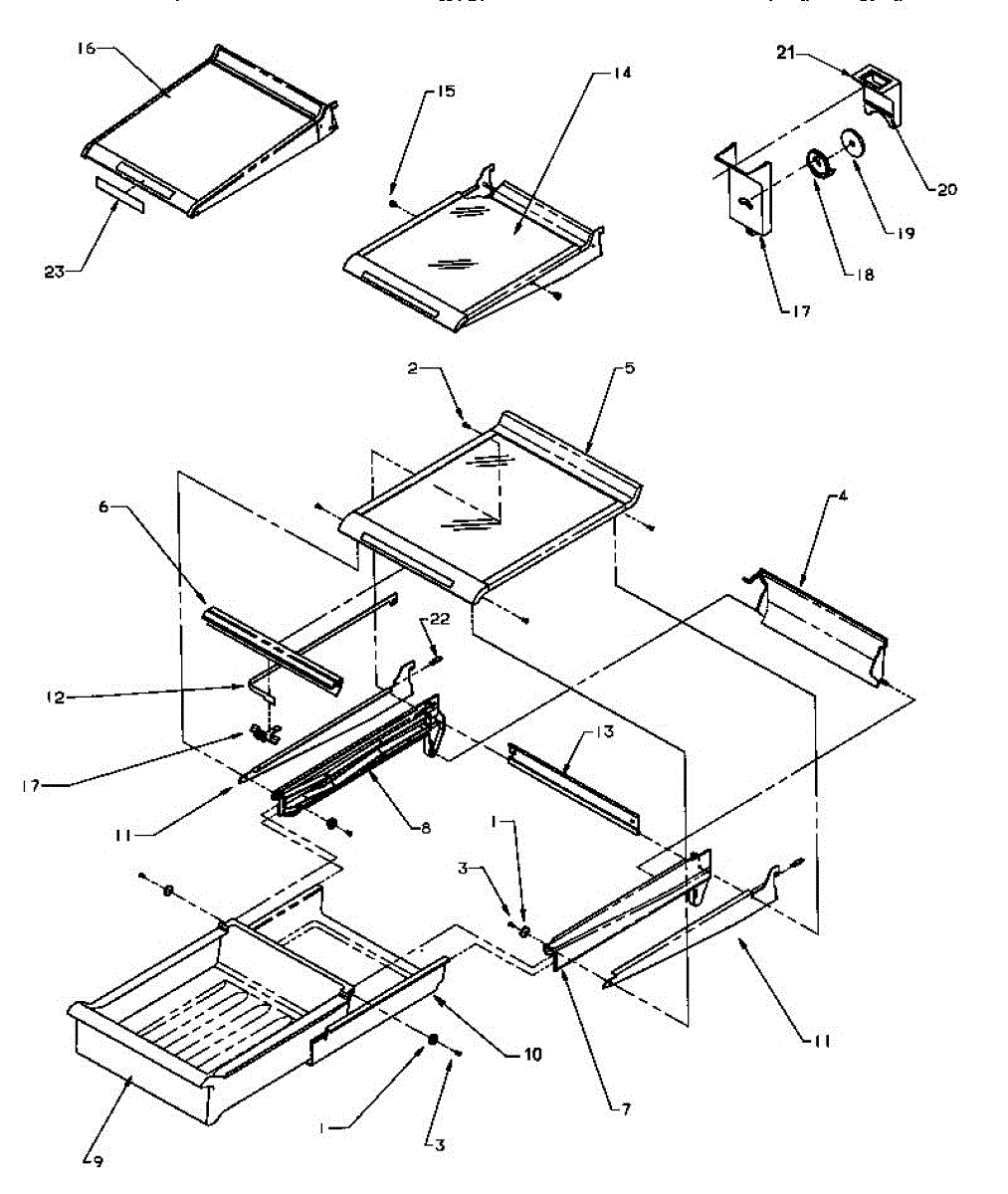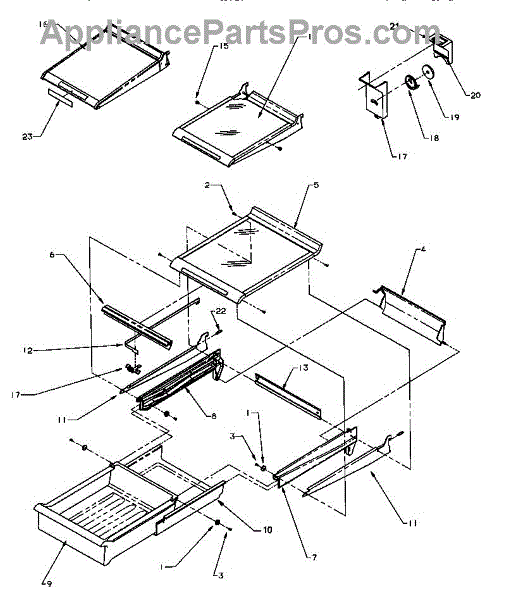 Small mounting screw for refrigerator crisper drawer frame assembly. Replaces missing or stripped screws that secure frame pieces together.