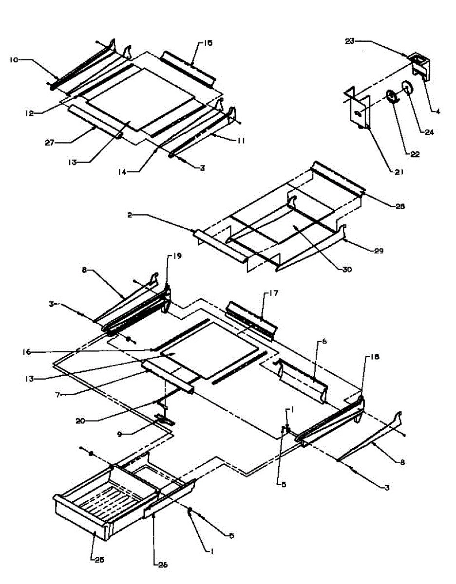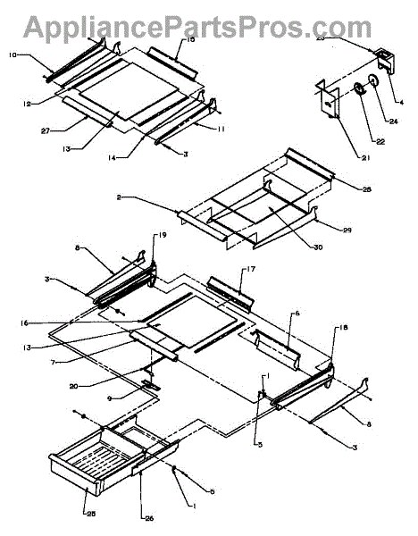 Small mounting screw for refrigerator crisper drawer frame assembly. Replaces missing or stripped screws that secure frame pieces together.