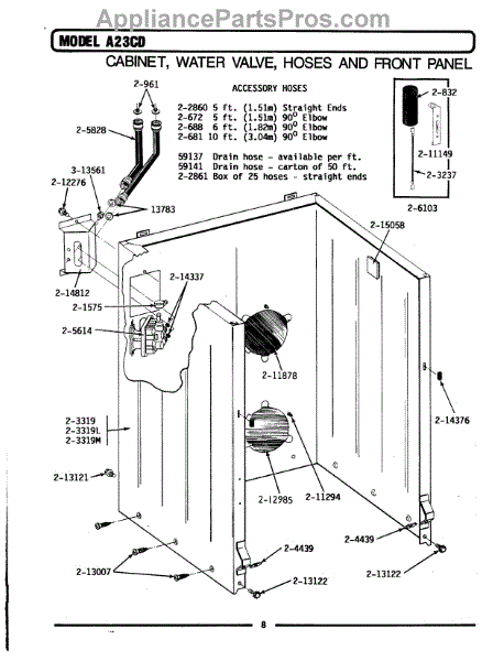 Size: 6 foot long. Washers not included. This is one hose, for a set with washers order 285363. For inlet hose screen use 285452A and for inlet hose washers use 285448A