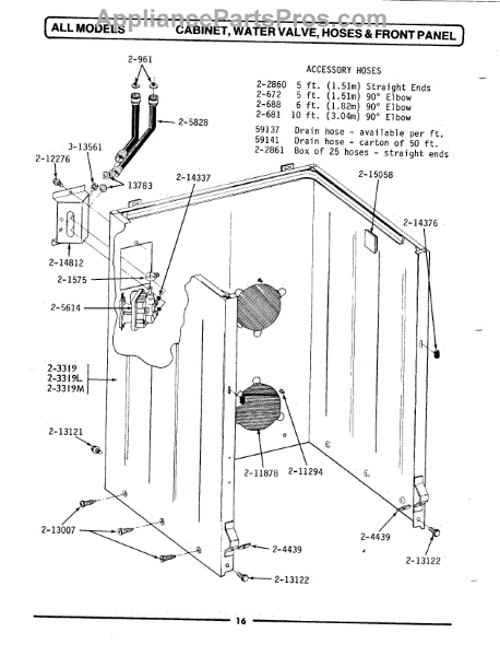 Size: 6 foot long. Washers not included. This is one hose, for a set with washers order 285363. For inlet hose screen use 285452A and for inlet hose washers use 285448A