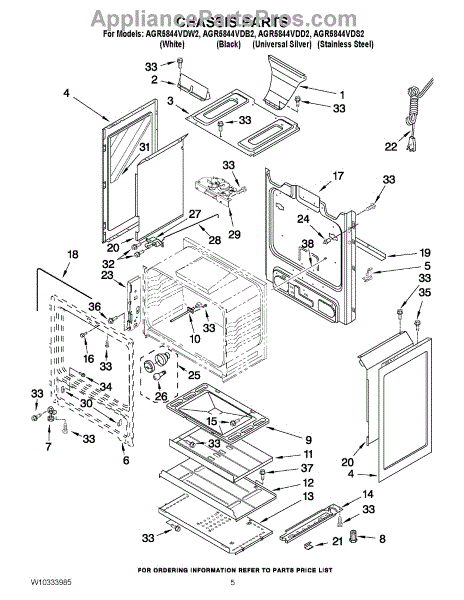 This factory screw secures appliance components to their mounting points. Replace missing, worn, or stripped hardware to restore a tight fit, proper alignment, and quieter operation across the affected assembly.