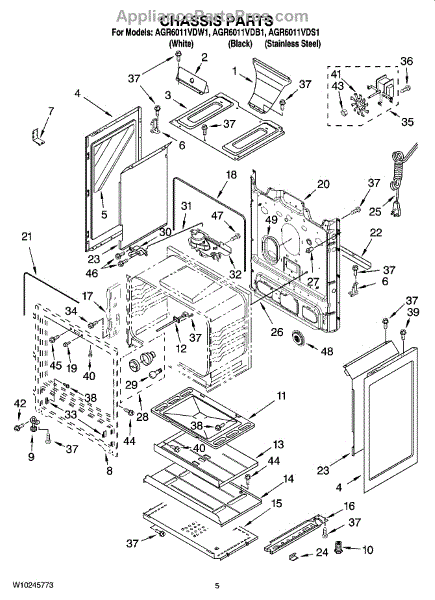 This factory screw secures appliance components to their mounting points. Replace missing, worn, or stripped hardware to restore a tight fit, proper alignment, and quieter operation across the affected assembly.
