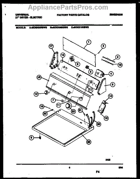 Parts for Frigidaire MDE436RBW0: 04 - Console And Control Parts