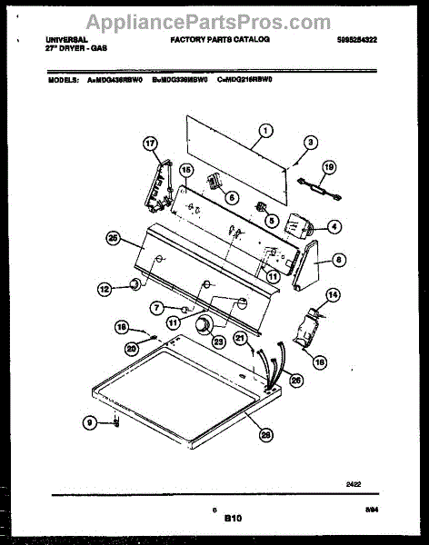 Parts for Frigidaire MDG336MBW0: 04 - Console And Control Parts