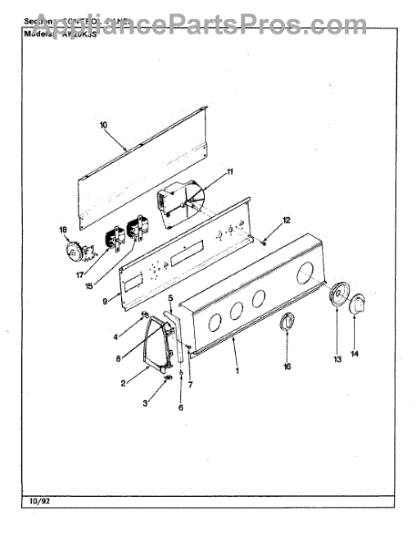 Parts for Admiral AW20K3WS: 04 - Control Panel (Rev. A-E) Parts