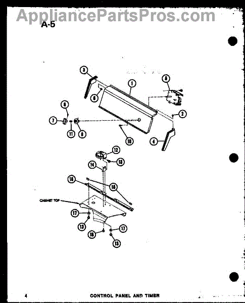 Parts for Amana TAA200 / P7575104W: 04 - Control Panel And Timer Parts