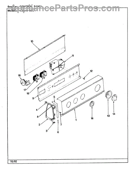 Parts for Magic Chef W20HY3SC: 04 - Control Panel (Rev. A-E) Parts