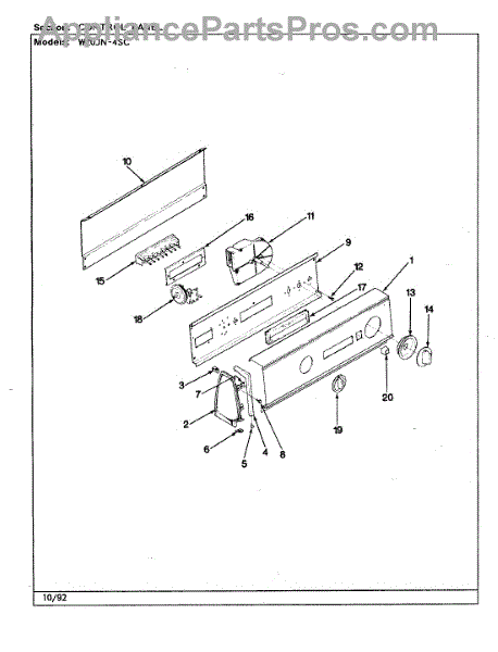 Parts for Magic Chef W20JA4SC: 04 - Control Panel (Rev. A)(W20jn4sc) Parts