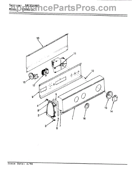 Parts for Magic Chef W26HA2K: 04 - Control Panel (W26hn2k)(Rev. E) Parts