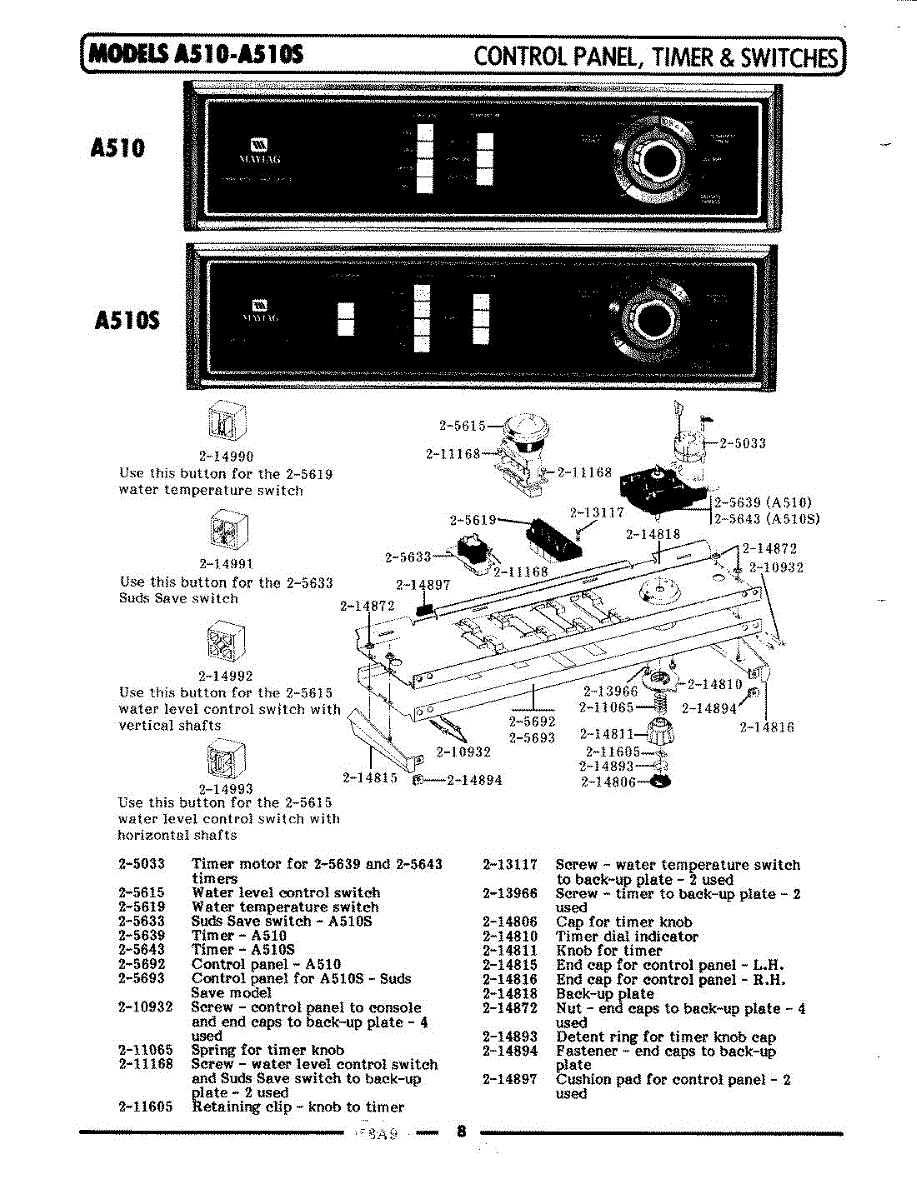 Parts for Maytag A510: 04 - Control Panel,Timer & Switches Parts