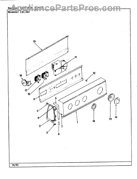 Parts for Norge LWL263A: 04 - Control Panel (Rev. G-L) Parts