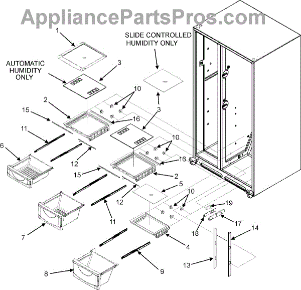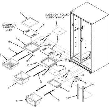 This crisper drawer cover frame forms the shelf above the produce bins and supports the glass insert. Replacing a damaged frame restores a level surface and smooth crisper drawer operation in your refrigerator.