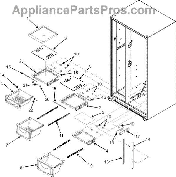 This crisper drawer cover frame forms the shelf above the produce bins and supports the glass insert. Replacing a damaged frame restores a level surface and smooth crisper drawer operation in your refrigerator.