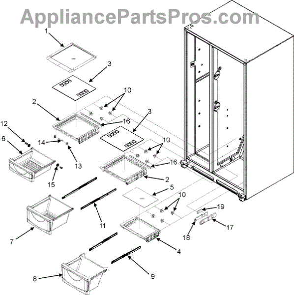 This crisper drawer cover frame forms the shelf above the produce bins and supports the glass insert. Replacing a damaged frame restores a level surface and smooth crisper drawer operation in your refrigerator.