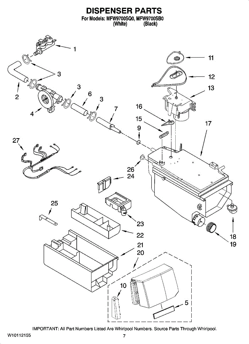 The Detergent Drawer is an OEM part for Whirlpool washing machines. It is responsible for holding and dispensing detergent and fabric softener during the wash cycle. The drawer ensures that the right amount of detergent is released at the appropriate time for optimal cleaning performance.
