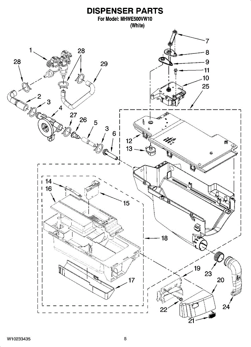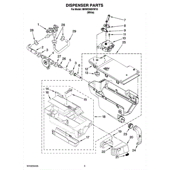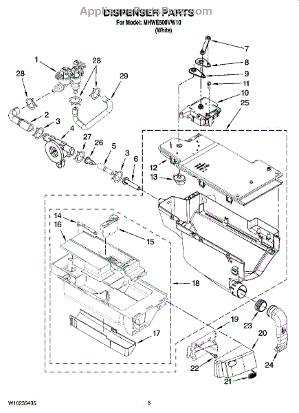 Connects detergent dispenser to wash tub for proper filling. Replace if cracked, leaking, or causing water pooling. Verify fit with your model number.