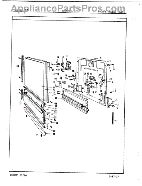 This factory screw secures appliance components to their mounting points. Replace missing, worn, or stripped hardware to restore a tight fit, proper alignment, and quieter operation across the affected assembly.