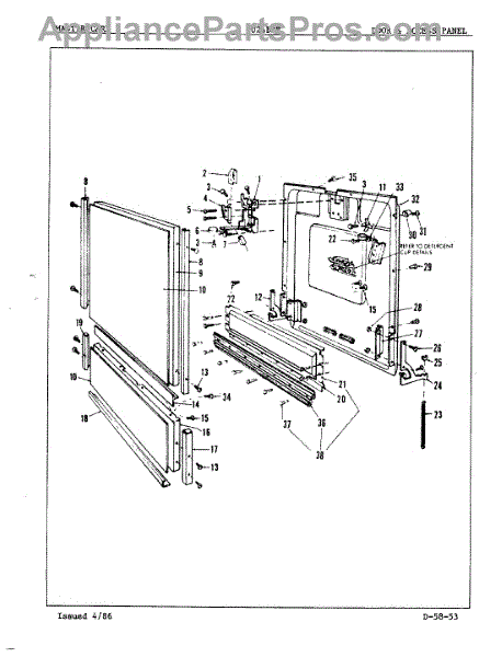 This factory screw secures appliance components to their mounting points. Replace missing, worn, or stripped hardware to restore a tight fit, proper alignment, and quieter operation across the affected assembly.