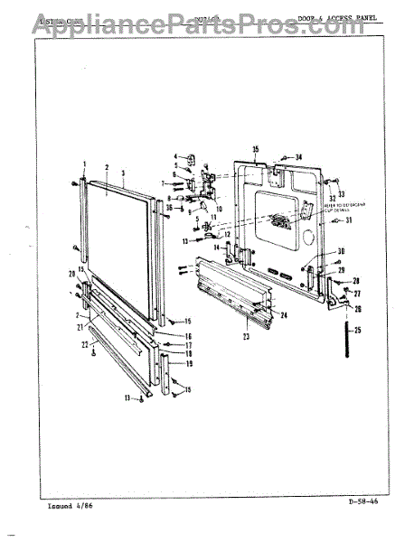 This factory screw secures appliance components to their mounting points. Replace missing, worn, or stripped hardware to restore a tight fit, proper alignment, and quieter operation across the affected assembly.