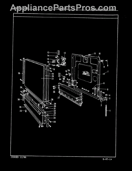 This factory screw secures appliance components to their mounting points. Replace missing, worn, or stripped hardware to restore a tight fit, proper alignment, and quieter operation across the affected assembly.